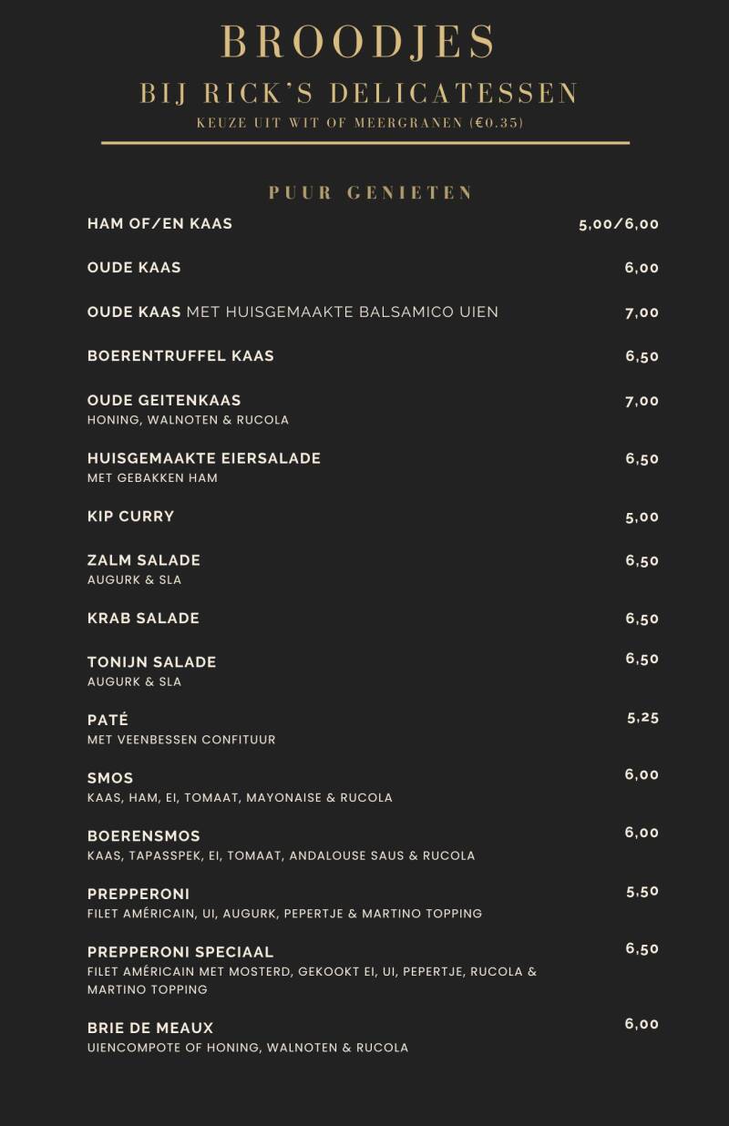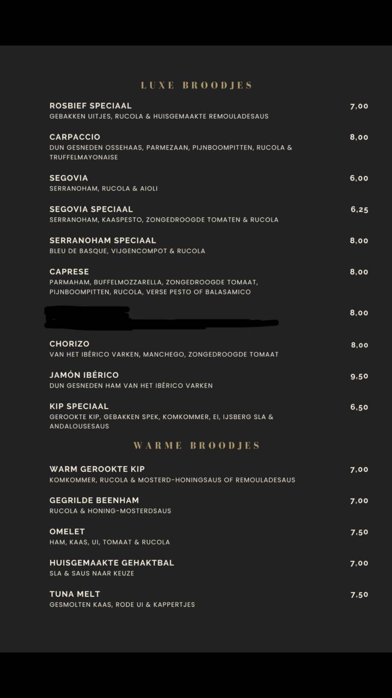 Hieronder vind je onze verrukkelijke broodjeskaart. Alles wordt ter plaatse en met liefde voor je klaargemaakt!
